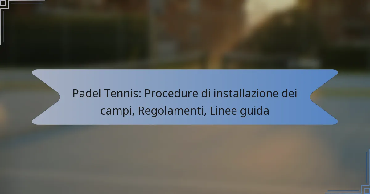 Padel Tennis: Procedure di installazione dei campi, Regolamenti, Linee guida